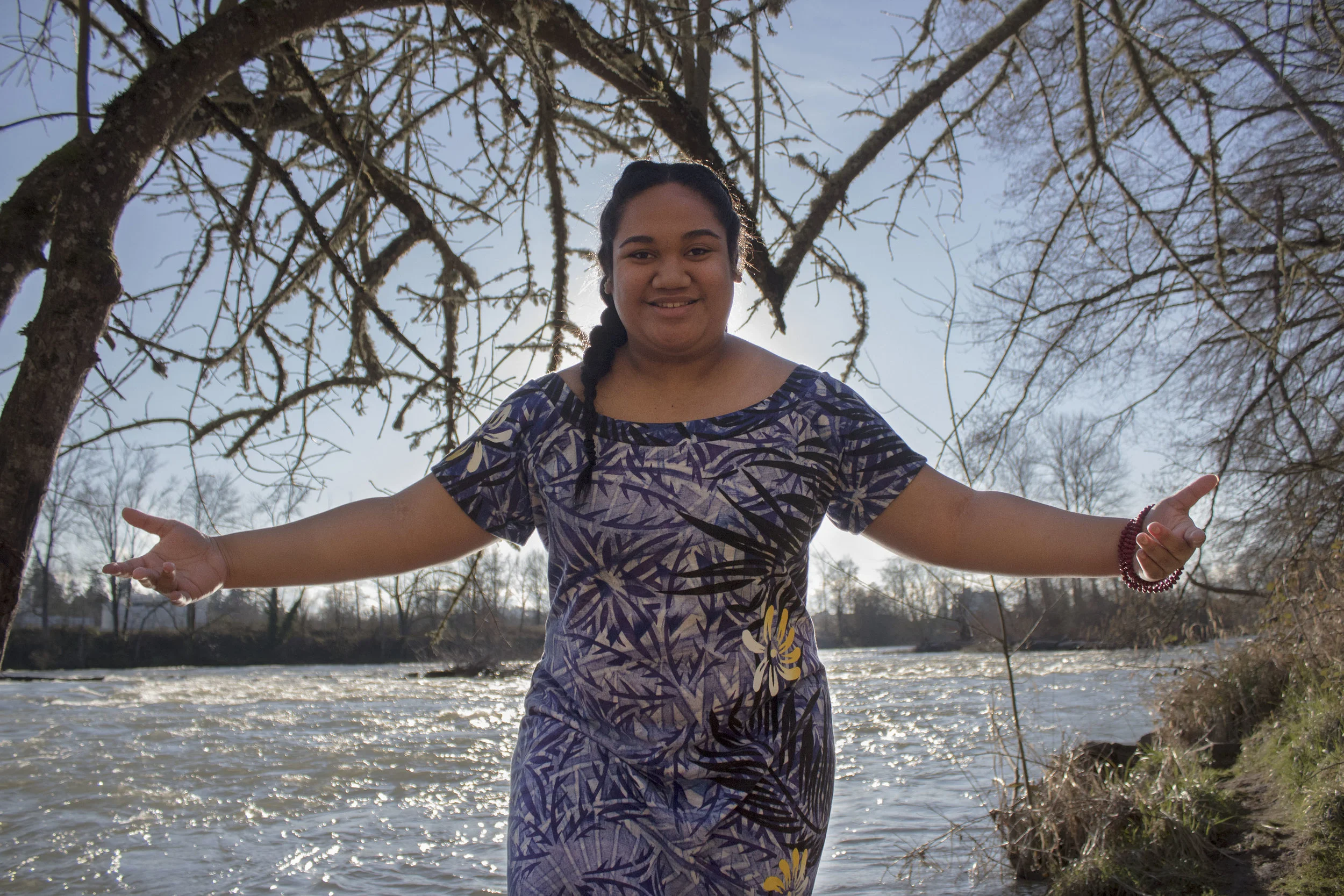 In Samoan culture, dancing is an important part of the community. “The Taualuga is a traditional Samoan and Tongan dance that is mainly performed by women. This dance connects me not only to my ancestors, but to my island, my community, my roots.” Although Schuster is no longer on the island, she practices the Taualuga near the river because it reminds her of home. “On the island I was constantly surrounded by water, an important element to my people. Although the river is not the same as the ocean, they are one.”